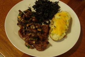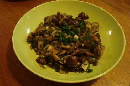 For Thanksgiving, I made a sautéed medley of wild mushrooms, and it was the surprise hit of the side dishes. I used Ina Garten’s recipe, and a mix of crimini, shiitake, portobello, and oyster mushrooms. (This picture is from last night, not Thanksgiving.)