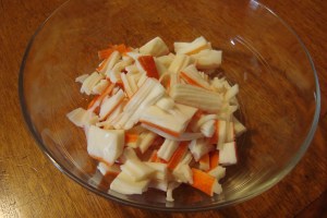 If you’ve never bought imitation crab meat before, you can find it at the grocery store near the smoked salmon.