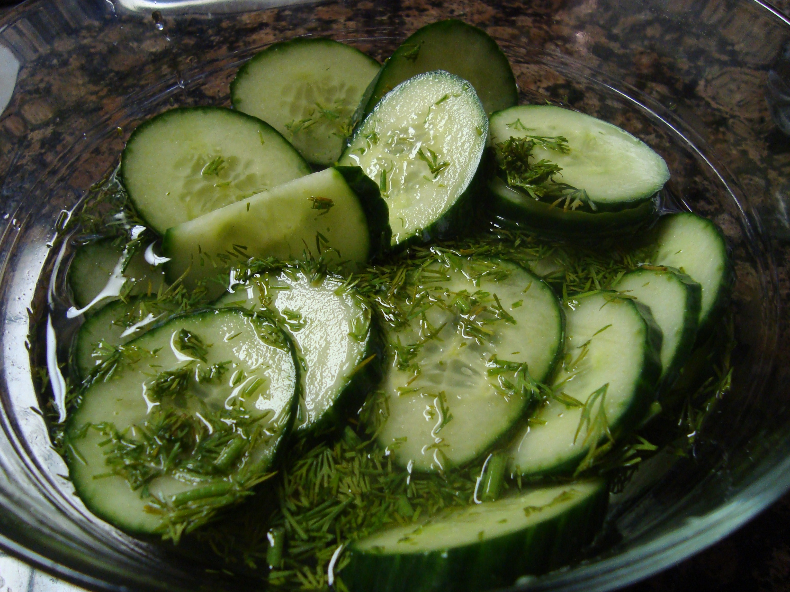 Place the cucumbers in a heat-safe bowl, then pour the water and vinegar mixture over the cucumbers. Toss with as much dill as desired, then cover and refrigerate overnight. These will keep in the fridge for several days.