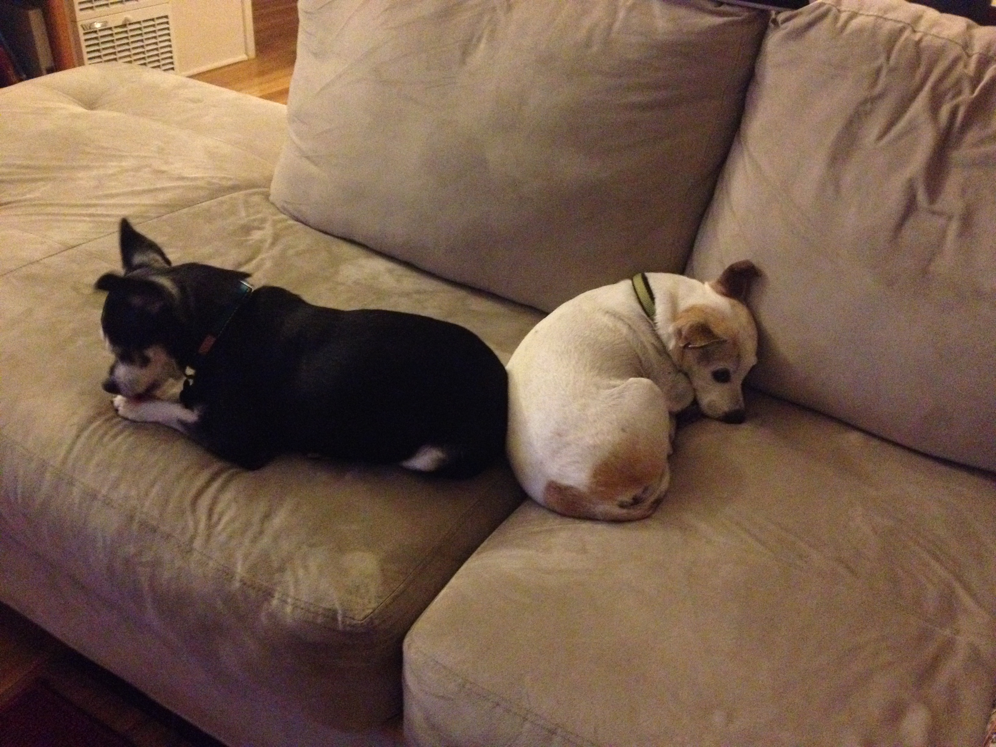 Lando and Rascal have adapted to life with Jackson very well. We started preparing them while I was pregnant. Rascal can’t jump onto the couch, so we stopped lifting him onto the couch whenever he wanted. He got used to sitting on the rug by our feet. It is very sweet, actually, he tends to sit by the feet of whomever is holding the baby. Lando has gotten more patient waiting for walks (at least with me), but we are still working to reduce his barking! Luckily Jackson is not terribly disturbed by barking chihuahuas. I’m glad that Lando and Rascal have each other for company, as I am less available to pet and snuggle them. That is just temporary, though!
