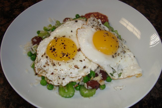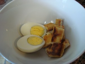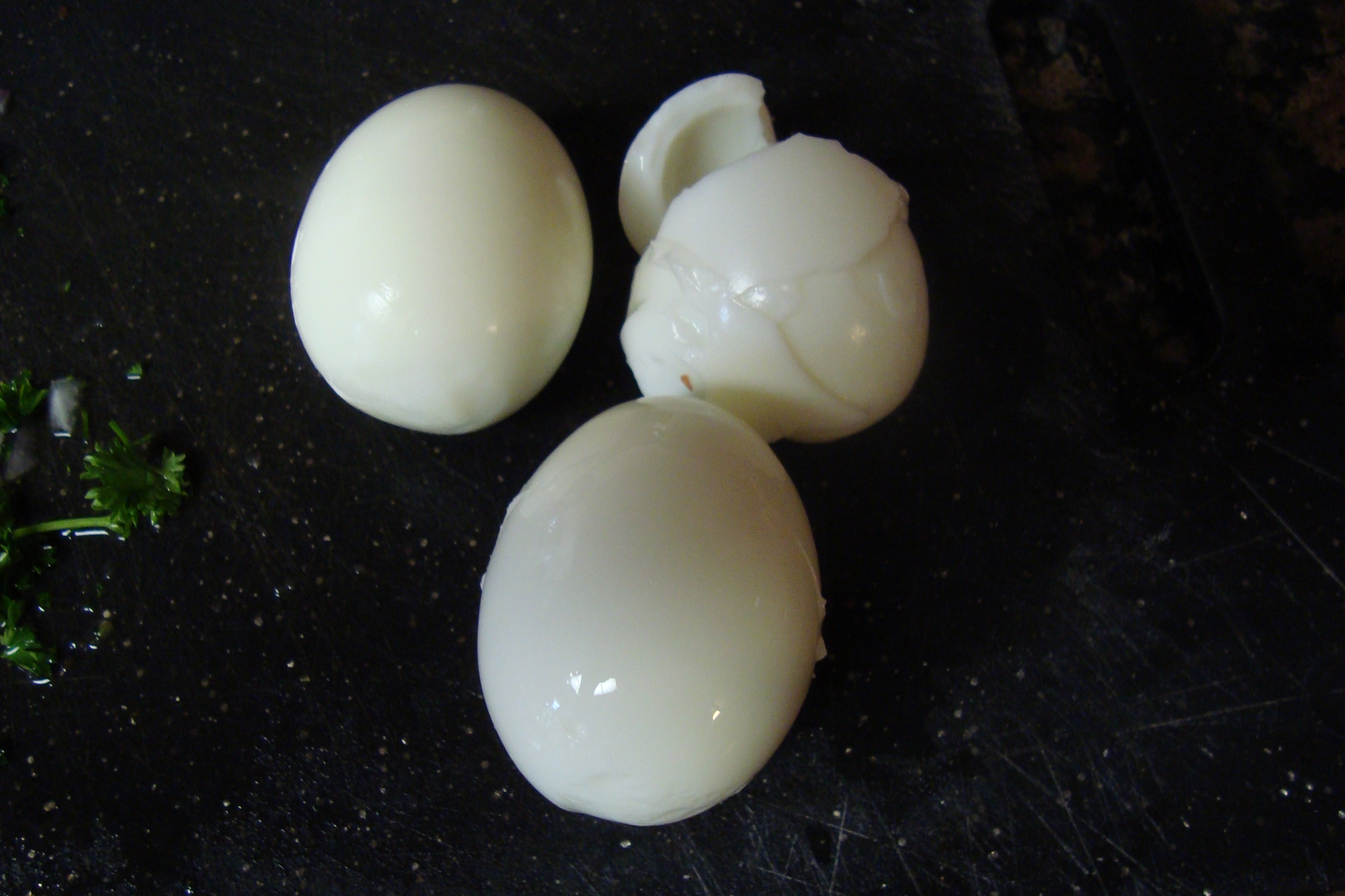 2 hard-boiled eggs, shells removed, sliced in half lengthwise