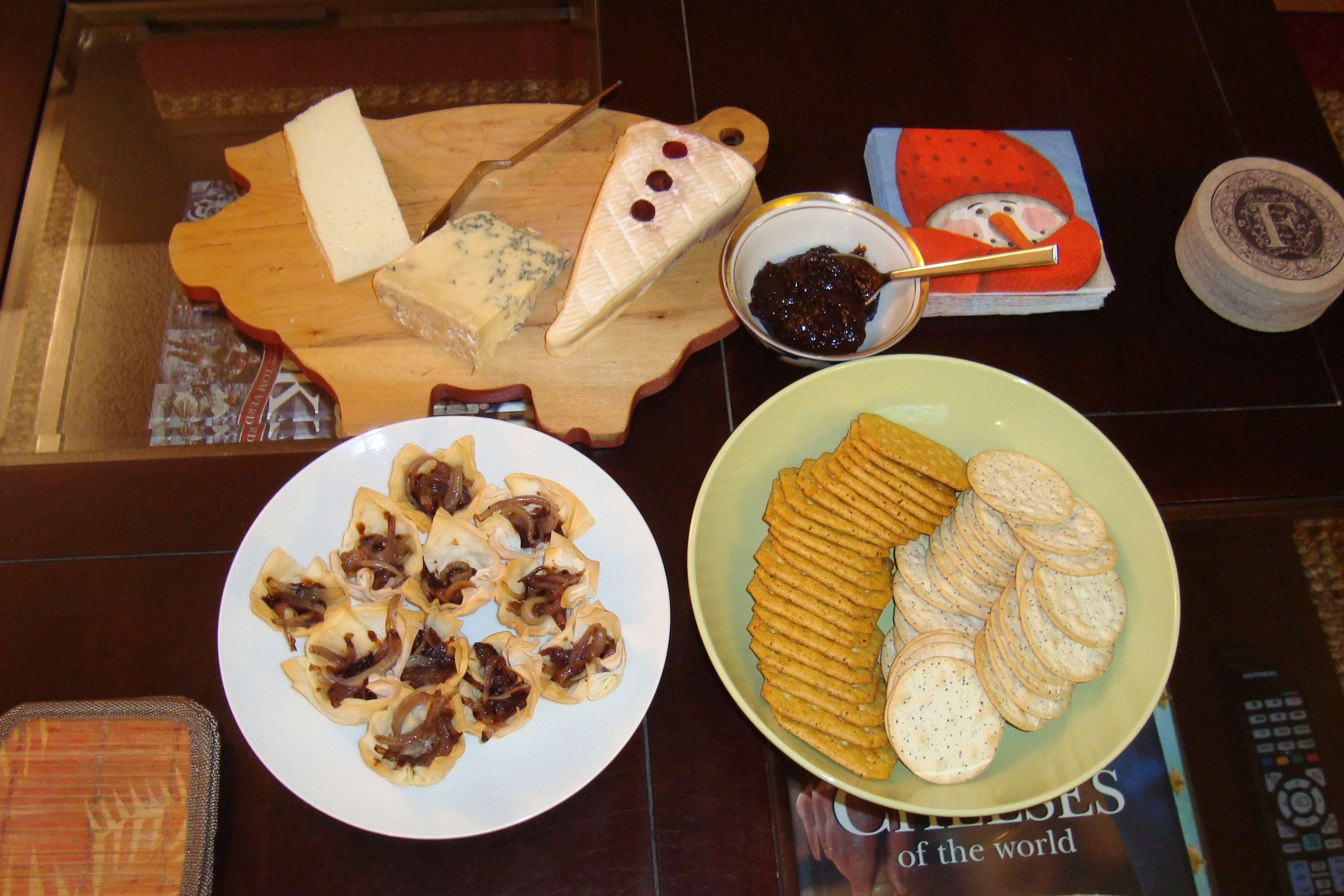 - Phyllo cups with caramelized sweet onions and fig butter (I found fig butter at Trader Joe’s)