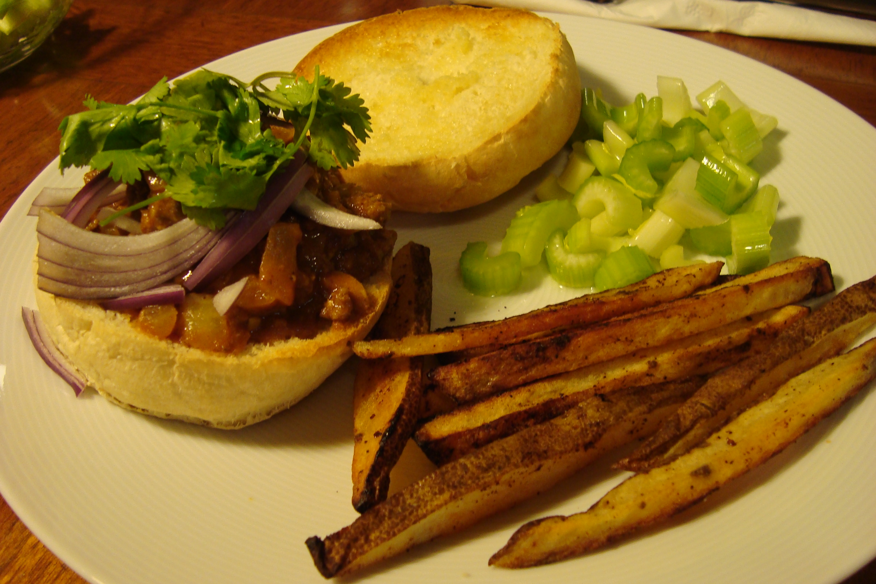 In honor of the first night of football, I had to make a large piece of meat! I made The Pioneer Woman’s Hot & Spicy Italian Drip Beef. Her other sandwiches (portobello mushroom and steak) have not let me down.