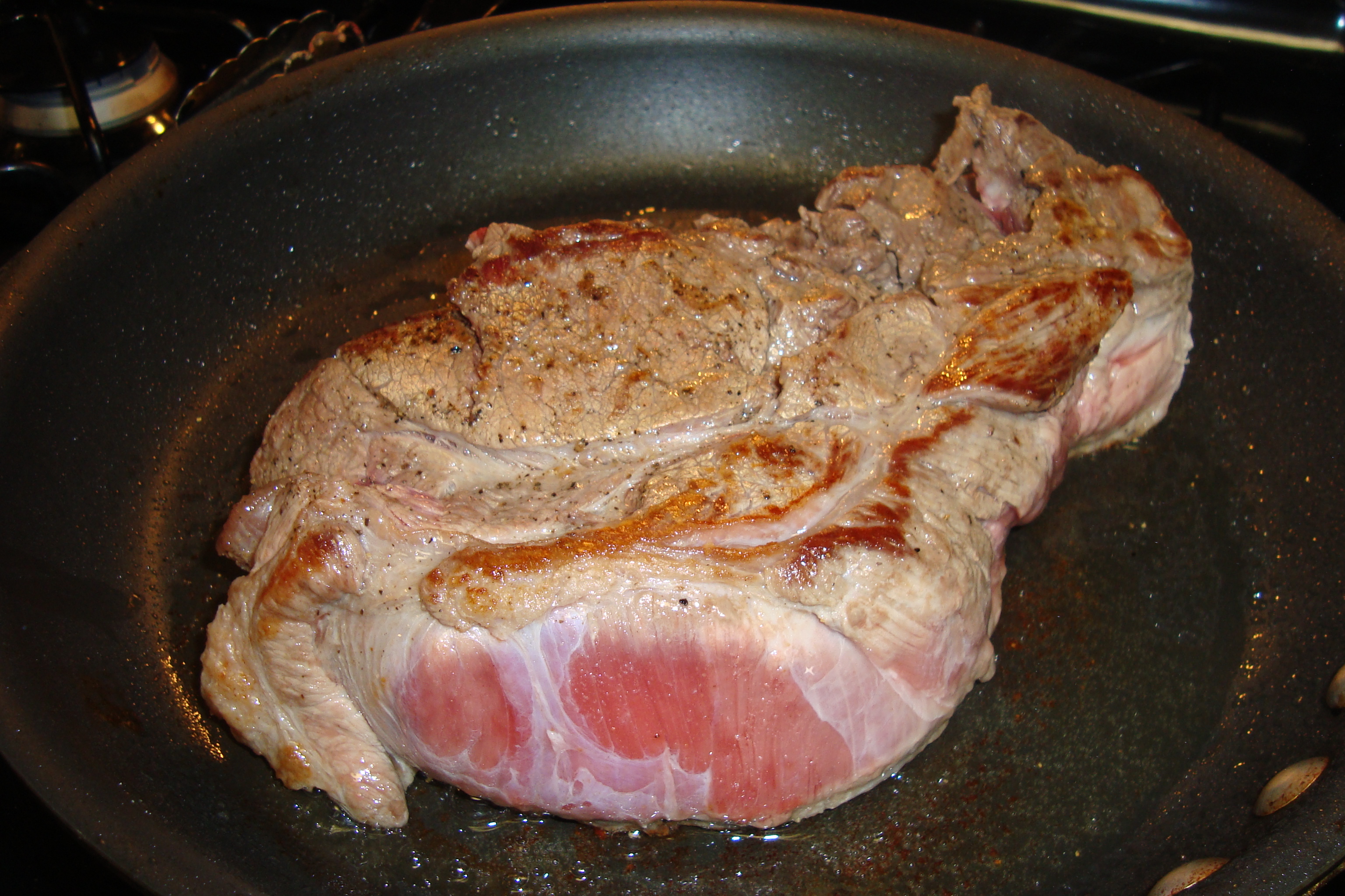 Rinse the chuck roast and pat dry. Season generously with salt and pepper. Heat the vegetable oil in a large skillet over medium-high heat, then sear the roast on both sides.