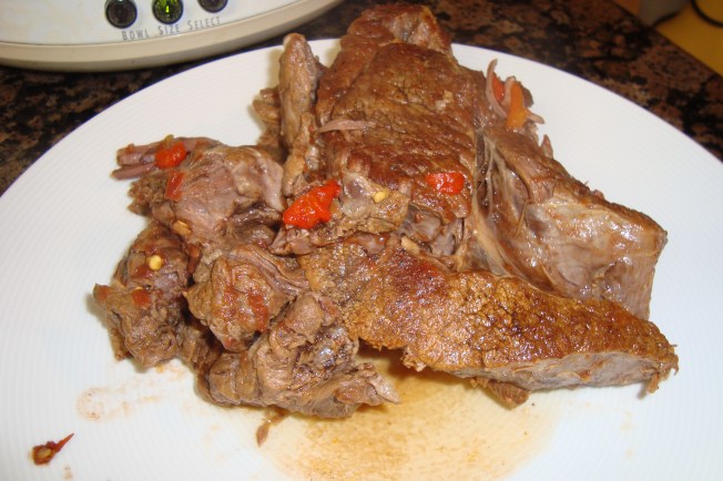 I used the slow-cooker to braise my roast, because although it has cooled down a bit, it is not nearly cool enough to be football season! I browned the meat in a pan first, but if I were to make this again, I would try skipping this step.