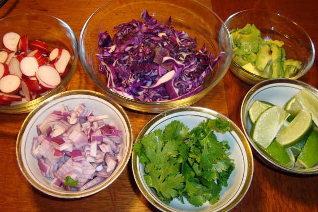 If necessary, skim the broth every 20 minutes, removing any impurities that float the top. After 30 minutes, remove the meatiest pieces of chicken. (For me that meant the legs, but if you used the whole chicken it will be the breasts.) Set them aside to cool. Continue to simmer the broth for another hour (90 minutes total). Taste and adjust the seasoning if necessary. (Mine required some more fish sauce and quite a bit of salt.)